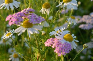 Keywords: chamomile flowers flower meadow wild flowers plant summer white purple spring meadow