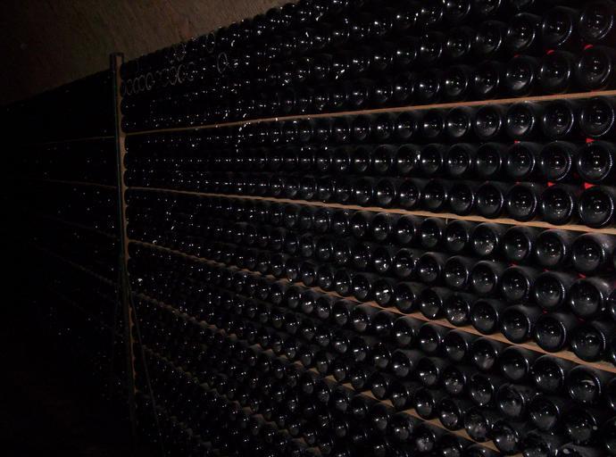 Keywords: Champagne-Mercier03.jpg Visite des Caves Mercier à Épernay Marne France alignement de bouteilles Champagne Mercier 2006-07-26 own assumed Sand~commonswiki