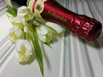 Keywords: champagne rotkäppchen heart romance flowers valentine's day love background bottle alcohol