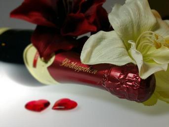 Keywords: champagne rotkäppchen heart romance flowers valentine's day love background bottle alcohol