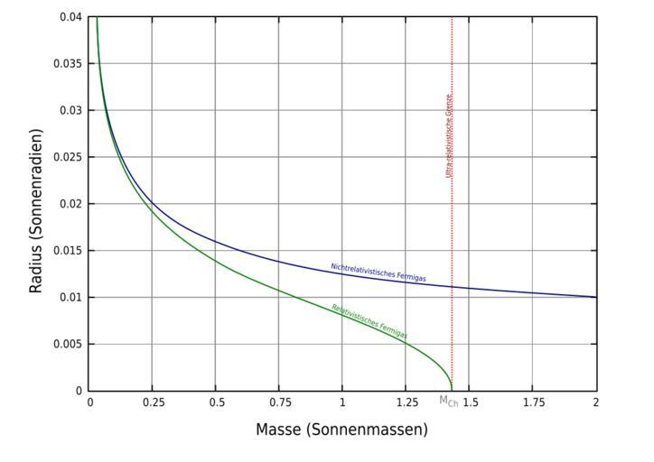 | Keywords: ChandrasekharLimitGraph de.svg mld Graph der den Radius in Standard-Sonnenradien eines beispielhaften aus kaltem Fermigas bestehenden weißen Zwerges in Relation zur Masse in Standard Sonnenmassen setzt Für das Molekulargewicht pro Elektron wird der Wert 2 angenommen Siehe auch German language version of a graph plotting the radius in standard solar radii against the mass in standard solar masses for a model white dwarf star consisting of a cold Fermi gas The blue curve shows a nonrelativistic model and the green curve a relativistic model The molecular weight per electron has been taken to be 2 See The Highly Collapsed Configurations of a Stellar Mass second paper S Chandrasekhar Monthly Notices of the Royal Astronomical Society 95 1935 pp 207--225 WhiteDwarf_mass-radius jpg AllenMcC 17-I-2007; revised 25-IX-2007 20-V-2008 vectorised and translated 12 46 3 February 2010 UTC AllenMcC translation vectorisation by chris 論 <gallery> File ChandrasekharLimitGraph png Original pixel version File ChandrasekharLimitGraph svg English vector graphics </gallery> Astronomy plots White dwarfs |