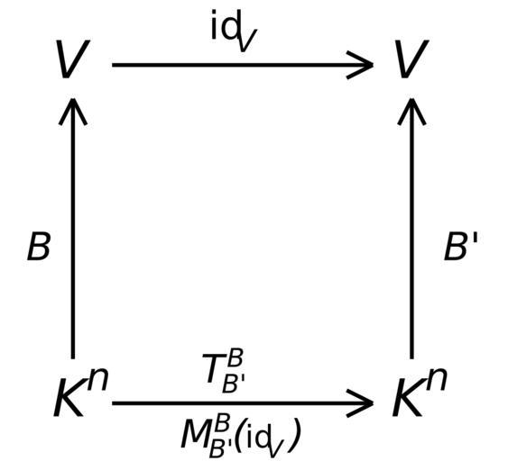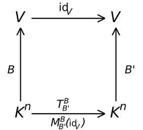 Keywords: Change of basis square2.svg en Change of basis square with an arrow with two names own Daniel5Ko Linear algebra Commutative squares
