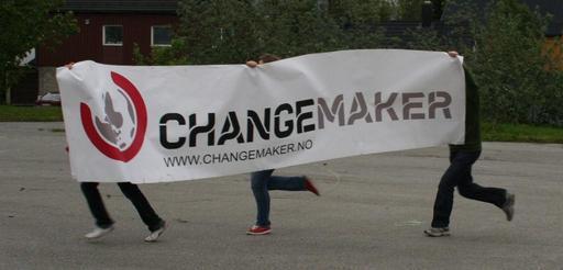 | Keywords: Changemaker banner.jpg en Photography showing members of Changemaker Norway running with a banner showing Changemaker Norway's logo own Jon Schjelderup photography shows parts of Changemaker Norway's logo 2008-06-25 Youth organizations in Norway Banners in Norway Humanitarian aid Logos of Norway |