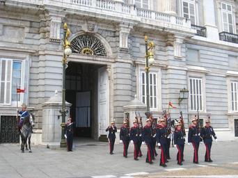 Keywords: Changing of the Guard, Royal Palace of Madrid - foot 1.JPG en Changing of the Guard Royal Palace of Madrid Spain I took this photograph own Daderot 2008-12-10 Public domain Changing of the Guard Royal Palace of Madrid December 2008