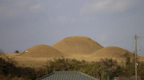 | Keywords: Changnyeong tombs below.jpg View from below toward part of the Bihwa Gaya royal tomb complex in Changnyeong Gyeongsangnam-do South Korea Note the doorway leading into one of the tombs Own 2007-01-27 Taken by User Visviva and released into the public domain Royal tombs of Bihwa Gaya |