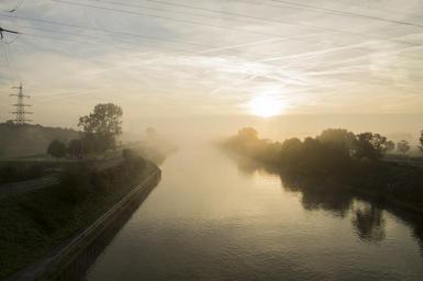 Keywords: channel sun water mood atmosphere waters germany reflection fog romantic mirroring haze
