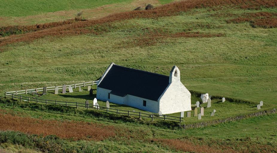 Keywords: chapel church graveyard hillside churchyard lonely buiilding
