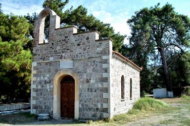 Keywords: chapel lesbos greece pine sky island