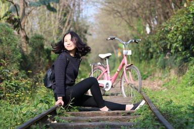 Keywords: character photography girls bike rail railway young smile asia joy youth
