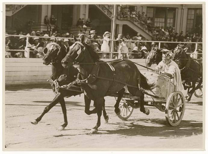 | Keywords: sam hood samhood royal easter shows royaleastershows 1930's 1930s horses chariot chariot race chariotrace state library of new south wales statelibraryofnewsouthwales animal monochrome vehicle harness horse Format: Photograph Notes: Find more detailed information about this photograph: acms.sl.nsw.gov.au/item/itemDetailPaged.aspx?itemID=153585 Search for more great images in the State Library's collections: acms.sl.nsw.gov.au/search/SimpleSearch.aspx From the collection of the State Library of New South Wales: www.sl.nsw.gov.au Format: Photograph Notes: Find more detailed information about this photograph: acms.sl.nsw.gov.au/item/itemDetailPaged.aspx?itemID=153585 Search for more great images in the State Library's collections: acms.sl.nsw.gov.au/search/SimpleSearch.aspx From the collection of the State Library of New South Wales: www.sl.nsw.gov.au |