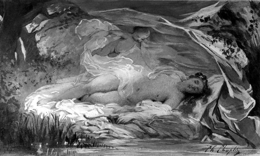 | Keywords: Charles Chaplin - Venus and Cupid - Walters 371640.jpg ca 1850 watercolor with white and red chalk on cream moderately thick slightly textured wove paper cm 9 4 16 3 accession number 37 1640 39379 William T Walters Baltimore date and mode of acquisition unknown Henry Walters city Baltimore Walters Art Museum Henry Walters Acquired by William T Walters Ch Chaplin in watercolor lower right; 55 in graphite verso The Essence of Line place of origin France Walters Art Museum license 2D The Essence of Line Charles Joshua Chaplin French paintings in the Walters Art Museum Media contributed by the Walters Art Museum needs category review Paintings of Venus and Cupid 1850s watercolor paintings 1850s paintings from France 1850s paintings in the United States 1850s mythological paintings Mythological paintings in the United States Mythological figures in nature Paintings of people in nature Black and white reproductions of paintings in color |