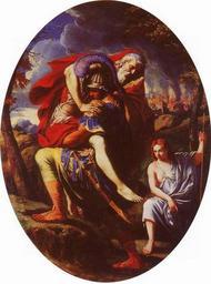 | Keywords: Charles Errard Enée transportant Anchise.jpg Artwork creator Charles Errard century 17 Oil on canvas cm 144 85 institution Musée des Beaux-Arts de Dijon object history credit line http //www latribunedelart com/a-propos-de-l-enee-transportant-anchise-du-musee-des-beaux-arts-de-dijon-jalons-pour-l-oeuvre-de La Tribune de l'art PD-old-100-1923 Charles Errard Paintings in the musée des Beaux Arts de Dijon 17th-century paintings not categorised by year 17th-century mythological paintings 17th-century oil on canvas paintings in France Flight of Aeneas in art Oval paintings of people Carrying in art Mythological paintings in France Mythological figures in nature Paintings of people in nature Anchises |