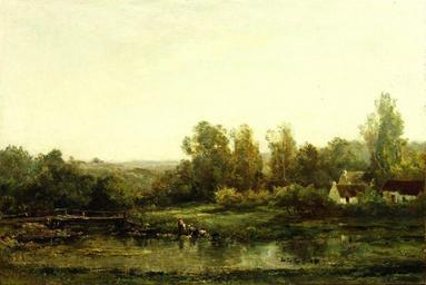 | Keywords: Charles-François Daubigny - Les blanchisseuses (1870s).jpg Artwork Creator Charles-François Daubigny 1870-1874 oil canvas cm 53 80 Institution Frick Collection Not on view accession number 1896 1 32 object history credit line Henry Clay Frick Bequest exhibition history http //collections frick org/view/objects/asitem/items 0040 146 Frick Collection PD-old-100 Paintings by Charles-François Daubigny Paintings in the Frick Collection Landscape paintings of France 1870s landscape paintings Paintings of landscapes with washerwomen 19th-century paintings |
