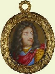 | Keywords: people indoor costume Charles II (29 May 1630 OS – 6 February 1685) was the King of England, Scotland, and Ireland. Charles II's father King Charles I was executed at Whitehall on 30 January 1649, at the climax of the English Civil War. The English Parliament did not proclaim Charles II king at this time. Instead they passed a statute making such a proclamation unlawful. England entered the period known to history as the English Interregnum or the English Commonwealth and the country was a de facto republic, led by Oliver Cromwell. The Parliament of Scotland, however, proclaimed Charles II King of Scots on 5 February 1649 in Edinburgh. He was crowned King of Scots at Scone on 1 January 1651. Following his defeat by Cromwell at the Battle of Worcester on 3 September 1651, Charles fled to mainland Europe and spent the next nine years in exile in France, the United Provinces and the Spanish Netherlands. A political crisis following the death of Cromwell in 1658 resulted in Charles being invited to return and assume the throne in what became known as the Restoration. Charles II arrived on English soil on 27 May 1660 and entered London on his 30th birthday, 29 May 1660. After 1660, all legal documents were dated as if Charles had succeeded his father in 1649. Charles was crowned King of England and Ireland at Westminster Abbey on 23 April 1661. Charles's English parliament enacted anti-Puritan laws known as the Clarendon Code, designed to shore up the position of the re-established Church of England. Charles acquiesced to the Clarendon Code even though he himself favoured a policy of religious tolerance. The major foreign policy issue of Charles's early reign was the Second Anglo-Dutch War. In 1670, Charles entered into the secret treaty of Dover, an alliance with his first cousin King Louis XIV of France under the terms of which Louis agreed to aid Charles in the Third Anglo-Dutch War and pay Charles a pension, and Charles promised to convert to Roman Catholicism at an unspecified future date. Charles attempted to introduce religious freedom for Catholics and Protestant dissenters with his 1672 Royal Declaration of Indulgence, but the English Parliament forced him to withdraw it. In 1679, Titus Oates's revelations of a supposed "Popish Plot" sparked the Exclusion Crisis when it was revealed that Charles's brother and heir (James, Duke of York) was a Roman Catholic. This crisis saw the birth of the pro-exclusion Whig and anti-exclusion Tory parties. Charles sided with the Tories, and, following the discovery of the Rye House Plot to murder Charles and James in 1683, some Whig leaders were killed or forced into exile. Charles dissolved the English Parliament in 1679, and ruled alone until his death on 6 February 1685. He converted to Roman Catholicism on his deathbed. Charles was popularly known as the Merrie Monarch, in reference to both the liveliness and hedonism of his court and the general relief at the return to normality after over a decade of rule by Oliver Cromwell and the Puritans. Charles's wife, Catherine of Braganza, bore no children, but Charles acknowledged at least 12 illegitimate children by various mistresses. Charles II (29 May 1630 OS – 6 February 1685) was the King of England, Scotland, and Ireland. Charles II's father King Charles I was executed at Whitehall on 30 January 1649, at the climax of the English Civil War. The English Parliament did not proclaim Charles II king at this time. Instead they passed a statute making such a proclamation unlawful. England entered the period known to history as the English Interregnum or the English Commonwealth and the country was a de facto republic, led by Oliver Cromwell. The Parliament of Scotland, however, proclaimed Charles II King of Scots on 5 February 1649 in Edinburgh. He was crowned King of Scots at Scone on 1 January 1651. Following his defeat by Cromwell at the Battle of Worcester on 3 September 1651, Charles fled to mainland Europe and spent the next nine years in exile in France, the United Provinces and the Spanish Netherlands. A political crisis following the death of Cromwell in 1658 resulted in Charles being invited to return and assume the throne in what became known as the Restoration. Charles II arrived on English soil on 27 May 1660 and entered London on his 30th birthday, 29 May 1660. After 1660, all legal documents were dated as if Charles had succeeded his father in 1649. Charles was crowned King of England and Ireland at Westminster Abbey on 23 April 1661. Charles's English parliament enacted anti-Puritan laws known as the Clarendon Code, designed to shore up the position of the re-established Church of England. Charles acquiesced to the Clarendon Code even though he himself favoured a policy of religious tolerance. The major foreign policy issue of Charles's early reign was the Second Anglo-Dutch War. In 1670, Charles entered into the secret treaty of Dover, an alliance with his first cousin King Louis XIV of France under the terms of which Louis agreed to aid Charles in the Third Anglo-Dutch War and pay Charles a pension, and Charles promised to convert to Roman Catholicism at an unspecified future date. Charles attempted to introduce religious freedom for Catholics and Protestant dissenters with his 1672 Royal Declaration of Indulgence, but the English Parliament forced him to withdraw it. In 1679, Titus Oates's revelations of a supposed "Popish Plot" sparked the Exclusion Crisis when it was revealed that Charles's brother and heir (James, Duke of York) was a Roman Catholic. This crisis saw the birth of the pro-exclusion Whig and anti-exclusion Tory parties. Charles sided with the Tories, and, following the discovery of the Rye House Plot to murder Charles and James in 1683, some Whig leaders were killed or forced into exile. Charles dissolved the English Parliament in 1679, and ruled alone until his death on 6 February 1685. He converted to Roman Catholicism on his deathbed. Charles was p
