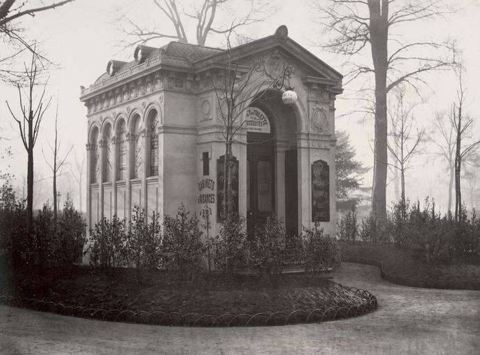 Keywords: Charles Marville, Cabinets water closets Dorion, Champs-Elysées, ca. 1865.jpg Public toilet in park with arched windows and portico pediment at roof with woman's face in tympanum glass panel doors garden path and lawn in foreground ~ 1865 1 photographic print mounted on cardboard albumen silver Size cm 27 36 2 Institution State Library of Victoria object history exhibition history credit line Gift; Government of France; 1881 SLVIC-digitalimage 112669 H2011 126/12 Title on contents page Catégorie G No 12 Cabinets water closets Dorion Champs-Elysées Photographer's blind stamp below image Title printed on slip of paper pasted to album page Not dated but circa 1865 accession number H2011 126/12 PD-100 Public toilets in Paris 1865 ca Buildings in the Jardins des Champs-Élysées 1865 ca Édicules établis sur la voie publique et dans les promenades Images of Paris from the State Library of Victoria |