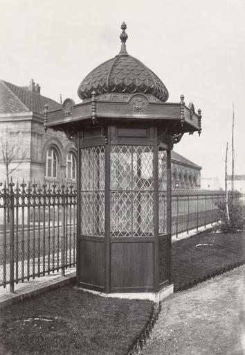 | Keywords: Charles Marville, Loge kiosque de Gardien de Square Montrouge, ca. 1865.jpg Photograph en Guard house for the Park's guard with latticed windows and cupola on roof situated on grass at edge of garden path railing fence behind and building on other side of road in background depicted people depicted place Square Ferdinand-Brunot Paris France ~ 1865 photographic print mounted on cardboard albumen silver 35 5 x 25 7 cm Institution State Library of Victoria accession number H2011 126/11 SLVIC-digitalimage 112742 H2011 126/11 Title on contents page Catégorie F No 11 Loge kiosque de Gardien de Square Montrouge object history exhibition history credit line Gift; Government of France; 1881 Photographer's blind stamp below image Title printed on slip of paper pasted to album page Not dated but circa 1865 Information field In collection Ville de Paris Édicules établis sur la voie publique et dans les promenades PD-100 Square Ferdinand-Brunot 1865 Sentry boxes in Paris 1865 ca Édicules établis sur la voie publique et dans les promenades Images of Paris from the State Library of Victoria Historical images of Paris 14e arrondissement 1865 |