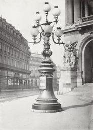 | Keywords: Charles Marville, Opéra candélabre à 7 lumières avec globe, 1878.jpg Photograph en Elaborately wrought iron lamp post with 7 globes theatrical poster mounted on lamp post classical style winged statue in background at entrance to a building depicted people depicted place 1878 photographic print mounted on cardboard albumen silver 35 5 x 26 5 cm accession number H2011 78/54 SLVIC-digitalimage 109383 H2011 78/54 Title on contents page Candélabre à 7 lumières avec globe Opéra Institution State Library of Victoria object history exhibition history credit line Gift; Government of France; 1881 Information field In collection Ville de Paris Collection des appareils d'éclairage au gaz établis sur la voie publique PD-100 Historical images of Opéra Garnier Harmony by François Jouffroy Collection des appareils d'éclairage au gaz établis sur la voie publique Images of Paris from the State Library of Victoria Rue Auber Paris |