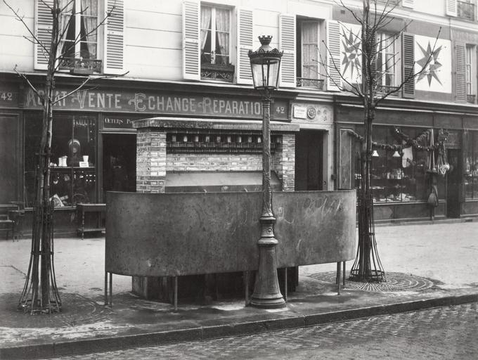 | Keywords: Charles Marville, Urinoir à 3 stalles, ardoise et maconnerie, Boulevard Ornano, ca. 1865.jpg Photograph en Slate and masonry urinal with three stalls raised modesty screen on curb of footpath with lamppost and single lantern in front of it Shop fronts with shutters on upper windows in background depicted people depicted place Boulevard Ornano Paris France ~ 1865 photographic print mounted on cardboard albumen silver 26 5 x 35 0 cm Institution State Library of Victoria accession number H2011 126/30 SLVIC-digitalimage 112733 H2011 126/30 Title on contents page Catégorie K No 30 Urinoir à 3 stalles ardoise et maconnerie Boulevart Ornano Boulevart is an older spelling of boulevard object history exhibition history credit line Gift; Government of France; 1881 Photographer's blind stamp below image Title printed on slip of paper pasted to album page Not dated but circa 1865 Information field In collection Ville de Paris Édicules établis sur la voie publique et dans les promenades PD-100 Boulevard Ornano Paris Urinals in Paris Street lights in Paris Édicules établis sur la voie publique et dans les promenades Images of Paris from the State Library of Victoria Taken with Phase One P45 |