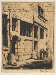 | Keywords: Charles Meryon, Rue des Mauvais Garçons, Paris, 1854.jpg Artwork Creator Charles Meryon Street of the Naughty Boys Paris 1854 Etching on wove paper; first of three states; lines of verse added in pen and ink plate 4 15/16 x 3 7/8 in 12 6 x 9 8 cm Institution Metropolitan Museum of Art object history exhibition history credit line Bequest of Susan Dwight Bliss 1966 371710 Signature pen and ink lower right C Meryon Inscription pen and ink above Quel mortal habitait / En ce gîte si sombre / Qui donc lá se cachait / Dans la nuit et dans l'ombre / Ah ma foi je l'ignore / Si tu veux le savoir / Curieux vas y voir / Il en est temps encore What mortal used to dwell in this dark lair Who used to hide himself at night in such a shady hole Ah my word I cannot tell If you wish to know O curious one go and see There is still time accession number 67 630 20 PD-100 Charles Meryon Images of Paris from the Metropolitan Museum of Art Rue des Mauvais-Garçons Paris Etchings of Paris Etchings in the Metropolitan Museum of Art 1854 in Paris 1850s etchings Guard stones in Paris |