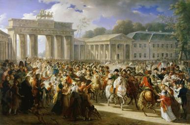 | Keywords: Charles Meynier - Entrée de Napoléon à Berlin. 27 octobre 1806.jpg Artwork creator Charles Meynier Einzug Napoleons an der Spitze seiner Truppen durch das Brandenburger Tor nach der siegreichen Schlacht bei Jena und Auerstedt Berlin 27 Oktober 1806 1810 oil on canvas cm 363 493 Institution Versailles Musée national des châteaux de Versailles et de Trianon MV 1552 ; INV 6628 ; MR 2134 000PE004995 <br/>https //www histoire-image org/etudes/entree-napoleon-berlin L ™Histoire par https //www histoire-image org/sites/default/mic01_meynier_002f jpg l ™image Credit line C MEYNIER FT 1810 ~ signature / date http //en gallerix ru/album/Versailles/pic/glrx-898790212 GalleriX PD-old-100-1923 DEFAULTSORT Meynier Charles; Napoleon in Berlin 1810; Versailles Charles Meynier Paintings in the Musée national du Château de Versailles Paintings of Napoleon I Classicist paintings of people 27 October Battle of Jena-Auerstedt Paintings of the Brandenburg Gate Brandenburg Gate in the 19th century Pariser Platz in the 19th century 1806 in Berlin |