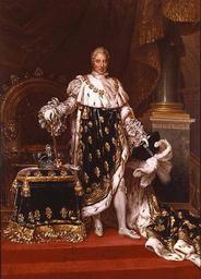 | Keywords: Charles X of France in his coronation robes by Paulin Guerin.png Artwork Creator Jean-Baptiste Paulin Guérin Charles X of France in his coronation robes 1827 Oil on canvas Musée de Toulon own Bbmmww 2008-11-29 other versions <gallery>Charles X Roi de France et de Navarre jpg</gallery> DEFAULTSORT 1827; Charles X by Guérin Jean-Baptiste Paulin Guérin Portrait of Charles X of France in Coronation Robes 1827 oil on canvas paintings in France Portrait 1827 portrait paintings from France Male 19th-century oil portraits of standing men at full length in ceremonial robes Collar of the Order of the Holy Spirit in portrait paintings Columns in portrait paintings Drapery in portrait paintings Ermine clothing in art Mantle fleurdelisé in portrait paintings Portrait paintings of men holding hats Portrait paintings of men with crowns on cushions Portraits holding sceptres Portraits with step Salon of 1827 Thrones in portrait paintings Original upload log wikitable - - 2008-11-29 20 35 26 450 × 626 205231 bytes Bbmmww <nowiki> fr Peinture de louis XIXn costume de sacre travail personnel own work Bbmmww 29 novembre 2008 </nowiki> |
