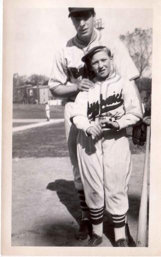 Keywords: Charlie Hyman & Joe DiMaggio, Bushwicks' uniform, 1936.jpg en Charlie Hyman and Joe DiMaggio in Bushwicks uniform Family Photo Unknown family member 1936 Baseball History Joe DiMaggio