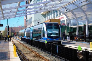 Keywords: vehicle train A southbound Lynx Blue Line light rail train leaving the CTC/Arena Station in Uptown Charlotte. A southbound Lynx Blue Line light rail train leaving the CTC/Arena Station in Uptown Charlotte.
