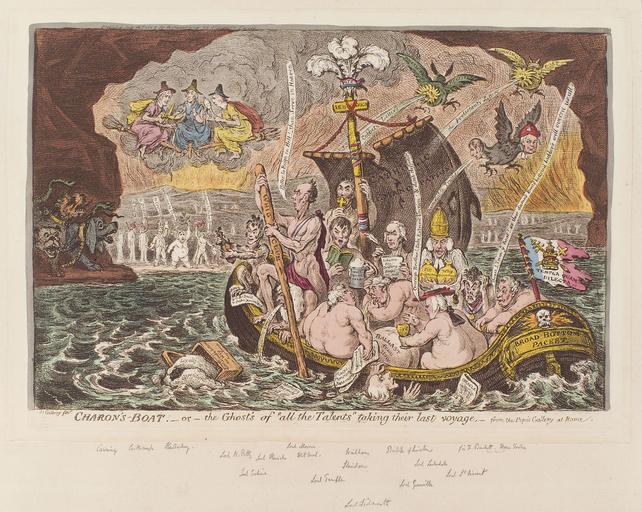 | Keywords: Charon's boat - or - the ghost's of All the Talents taking their last voyage by James Gillray.jpg  Charon's boat - or - the ghost's of All the Talents taking their last voyage by James Gillray died 1815 published 1807 See source website for additional information This set of images was gathered by User Dcoetzee from the National Portrait Gallery London website using a special tool All images in this batch have been confirmed as author died before 1939 according to the official death date listed by the NPG D12895 1807 Creator James Gillray File Charon's Boat jpg PD-old-100 National Portrait Gallery London James Gillray Charon |