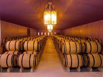 Keywords: CHATEAU LUSSAC-015.jpg en Chateau de Lussac's Oak barrel cellar fr Le chai à barriques du Château de Lussac own Relaisfrancmayne Château de Lussac Barrique wine barrels