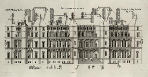 | Keywords: ChateauMadrid.jpg fr Face avant et un des cotés du chateau de Madrid tirés de l'ouvrage d'Androuet du Cerceau Les plus excellents bastiments de France Chateau de Madrid d'après Les plus excellents bastiments de France Creator Jacques I Androuet du Cerceau XVI ème siècle PD-old-100 Château de Madrid Castle elevations Le premier volume des plus excellents Bastiments de France |