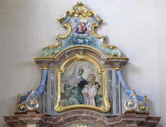 | Keywords: Châtenois StGeorges52.JPG fr Alsace Bas-Rhin Châtenois Eglise Saint-Georges Autel secondaire Tableau de René Kuder Education de la Vierge 1958 own Rh-67 2011 cc-by-sa-3 0 PM67001594 IM67006655 Taken with Canon PowerShot SX20 IS Photographs of Châtenois by Ralph Hammann Artwork / Œuvre d'art / Kunstwerk oil canvas cm Eglise Saint-Georges Châtenois Autel secondaire PM67001595 IM67009304 object history Tableaux peints par René Kuder en 1958 pour les couronnements des autels retables secondaires other versions Ralph Hammann PD-old accession number Altars in Église Saint-Georges de Châtenois 18th-century altars in Alsace Baroque altars in Alsace Paintings of Education of Virgin Mary 20th-century church paintings in Alsace Objets monuments historiques in Châtenois Bas-Rhin Objets monuments historiques in Bas-Rhin church paintings |