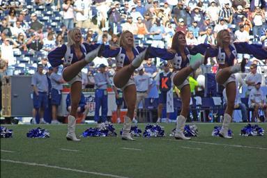 Keywords: cheerleaders dallas cowboys kick line football professional entertainment game field performance