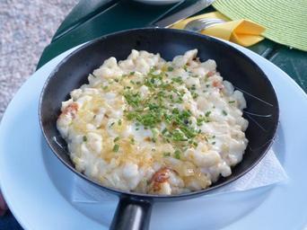 Keywords: cheese noodles eat court substantial tasty spicy cheese spätzle main course beer garden food pan fry up chives
