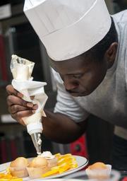 Keywords: chef decorating cupcakes preparation artistic kitchen concentration dessert snacks