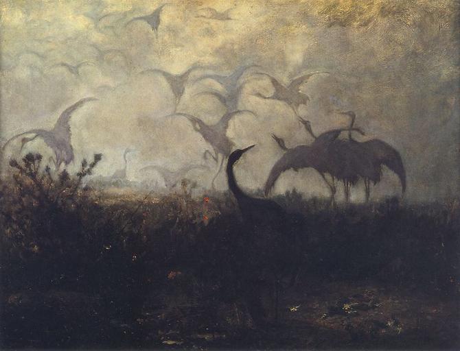 | Keywords: ChelmonskiJozef.1870.OdlotZurawi.jpg Artwork Creator Józef Chełmoński 1870 Oil on canvas cm 44 58 Institution National Museum Kraków accession number object history credit line http //www pinakoteka zascianek pl/Chelmonski/Images/Odlot_zurawi jpg www pinakoteka zascianek pl See below PD-old-100-1923 1914 DEFAULTSORT 1870; Cranes Paintings by Józef Chełmoński in the National Museum in Kraków Paintings in the Gallery of 19th-Century Polish Art in the Sukiennice Cranes in art 1870 paintings Chełmoński Józef Flocks of birds |