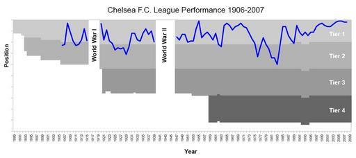 | Keywords: Chelsea FC League Performance 1906-2008.PNG Chart showing the progress of Chelsea F C through the English Football League system since joining in 1905-1906 to 2007-08 The notches and bumps in the different tiers show when changes were made in the number of teams playing in each division Transferred from http //en wikipedia org en wikipedia <br/> Original text I created this work entirely by myself 2008-10-02 Payo talk profile on english wikipedia en English Wikipedia Payo ChelseaFC_League_Performance svg Original upload log page en wikipedia Chelsea_FC_League_Performance_1906-2008 PNG 2009-03-02 20 03 Mahahahaneapneap 1209×538× 25879 bytes <nowiki>Compressed</nowiki> 2008-10-02 08 40 Payo 1209×538× 40560 bytes <nowiki> I created this work entirely by myself 2 October 2008 ~~~ </nowiki> Chelsea F C diagrams Association football diagrams of England ImageNote 1 239 209 431 198 1209 538 2 اچ جی اچ نودونه بزرگ ImageNoteEnd 1 |