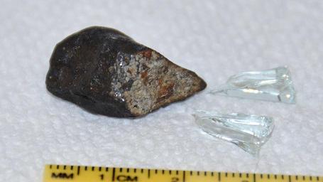 | Keywords: Chelyabinsk-16x9.jpg en My small fragment of the Chelyabinsk meteorite and a couple pieces of the broken glass that the sonic boom caused Metric ruler added for scale The image has an aspect ratio of 16 x 9 so that it can easily be resized in PhotoShop for broadcast TV 2014-02-21 19 11 35 own Richard B Drumm cc-zero Uploaded with UploadWizard Chelyabinsk meteorite |