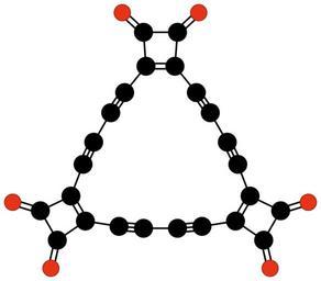 Keywords: Chemfm tris 3 4 dialkynyl 3 cyclobutene 1 2 dione.svg Molecular diagram of tris 3 4-dialkynyl-3-cyclobutene-1 2-dione For the oxocarbon Wikipedia article Own 2009-07-14 Jorge Stolfi Carbon oxides Alkyne derivatives Cyclobutene derivatives Macrocyclic compounds