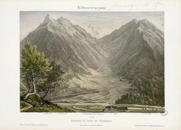 | Keywords: Chemin du Port de Vénasque - Vue prise au-dessus de l'Hospice - Fonds Ancely - B315556101 A MERCEREAU 1 013.jpg Impression en 3 coul par Frick frères à Paris Les recueils de lithographies de Mercereau sont composés de lithographies provenant de La France de nos jours vaste suite publiée par livraisons de 1853 à 1876 et comprenant 475 planches en deux tirages l'un à deux teintes noir et bistre l'autre en couleurs Les libraires ont réuni ces planches en albums de composition variable quant au nombre de planches et aux dessinateurs Asselineau Mercereau Maurice Deroy etc Un titre Les Pyrénées par Ch Mercereau; Bagnères-de-Luchon par Ch Mercereau était frappé sur le plat supérieur de la reliure de l'album ainsi que le nom du Libraire pour lequel il était réalisé La plupart des recueils de ces planches pyrénéennes portent le nom de Sajous libraire à Bagnères-de-Luchon; l'album le plus complet que nous ayons vu comprend 48 lithographies de Mercereau Peu commun Les pl 1 à 20 sont numérotées de 442 à 461 La pl 21 en camaïeux est numérotée 468 elle est dessinée d'après nature et lithographiée par Deroy La pl 22 ne porte aucune indication excepté le tampon Hommage du propriétaire Aimé Géruzet - Bagnères de Bigorre Ancely René 1876 - 1966 Possesseur fre public domain domaine public B315556101_A_MERCEREAU_1_013 jpg image/jpeg 1 f de pl lith en coul ; 27 5 cm oblong Frick frères Imprimeur Sinnett 17 -18 ; éditeur Éditeur http //numerique bibliotheque toulouse fr/collect/general/index/assoc//ark /74899/B315556101_A_MERCEREAU_1_013 dir/B315556101_A_MERCEREAU_1_013 jpg Bibliothèque municipale de Toulouse A-MERCEREAU 1-13 Creator Charles Mercereau http //catalogues toulouse fr/web2/tramp2 exe/do_keyword_search/log_in setting_key BMT1 servers 1home query p001495 Bagnères de Luchon - Vue de l'établissement thermal et du parc prise au dessus de la buvette Bagnères de Luchon entrée de l'avenue d'Etigny Cascade Richard - Vallée du Lys St Bertrand de Comminges - Maison de Pierre Bridaul en 1440 Haute Garonne Fond de la Vallé du Lys Cascade d'Enfer - Vallée du Lys Gouffre infernal - Vallée du Lys Cascade du Coeur - Vallée du Lys Lac et Cascade d'Oo i e Oô près Luchon Haute Garonne Eglise d'Oo i e Oô et glacier de la vallée Bagnères-de-Luchon l'établissement thermal et la buvette Castel-Vielh et la Vallée de Luchon Port de Vénasque - Vue prise au-dessus des cinq lacs Cascade des Demoiselles Vallée de l'Hospice-Luchon Cascade des Parisiens - Vallée de l'Hospice Haute-Garonne Cascade de Juzet près Bagnères-de-Luchon Haute-Garonne St Béat Haute Garonne St Béat - Vue de la Chapelle Notre-Dame du Château Haute Garonne St Bertrand de Comminges Haute-Garonne Laval - Vue générale prise du Viaduc Sans titre Chalet vignette http //numerique bibliotheque toulouse fr/collect/general/index/assoc//ark /74899/B315556101_A_MERCEREAU_1_013 dir/B315556101_A_MERCEREAU_1_013_thumb jpeg between 1853 1876 Chemin du Port de Vénasque - Vue prise au-dessus de l'Hospice B315556101_A_MERCEREAU_1_013 woodblock print - lithography - engraving - colors - color lithograph Mountains of France in art History of Pyrénées Bagnères-de-Luchon in art Charles Mercereau Mountain passes of France 19th-century art |