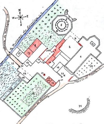 | Keywords: Cherlieu-plan-abbaye.jpg Auteur Jean-René Sujet Plan de l'abbaye de Cherlieu ; les zones en rouge représentent les vestiges actuels Plan de Cherlieu au moment de la Révolution 1 Eglise ; 2 Cloître ancien ; 3 Maison conventuelle 1708 ; 4 Quartier des novices; 5 Nouveau palais monastique ; 6 Cloître moderne 17 mai 1773 ; 7 Façade du Levant et grand escalier ; 8 Jardin et verger ; 9 Maisons de domestiques ; 10 Remises ; 12 Quartier de l'abbé ; 11 et 13 Maison des portiers ; 13 bis Prison ; 14 et 16 Dépendances ; 15 Colombier ; 17 Etang actuellement desséché ; 18 Carpière ; 19 Jardin de l'abbé ; 20 Ruisseau des Ecrevisses ; 21 23 24 25 Portes ; 22 Ancienne digue ; 20 Emplacement ancien de la Croix ; 27 Emplacement actuel de la Croix monolithe de Ferdinand de Rye 1613 ; 28 Pont et vannage ; 20 Maison du notaire royal et abbatial ; 30 Cimetière des moines ; 31 La grande Carrière Transferred from http //fr wikipedia org fr wikipedia; transferred to Commons by User Bloody-libu using http //tools wikimedia de/~magnus/commonshelper php CommonsHelper 2006-10-06 Original uploader was Jean René at http //fr wikipedia org fr wikipedia Released into the public domain by the author fr wikipedia Jean René Original upload log page fr wikipedia Cherlieu-plan-abbaye jpg 2006-10-06 13 24 Jean René 462×550× 47779 bytes <nowiki>Plan de l'abbaye de Cherlieu ; les zones en rouge représentent les vestiges actuels</nowiki> Abbaye de Cherlieu |