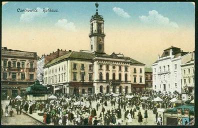 | Keywords: Chernivtsi 33.jpg en Main square of Chernivtsi city in western Ukraine 1905 2013-02-11 17 12 53 http //centrum pogranicze sejny pl/ryciny-list php Unknown deceased photographers 1905-1910 Custom license marker 2013 02 11 PD-old Uploaded with UploadWizard Town hall of Chernivtsi Historical images of Chernivtsi |