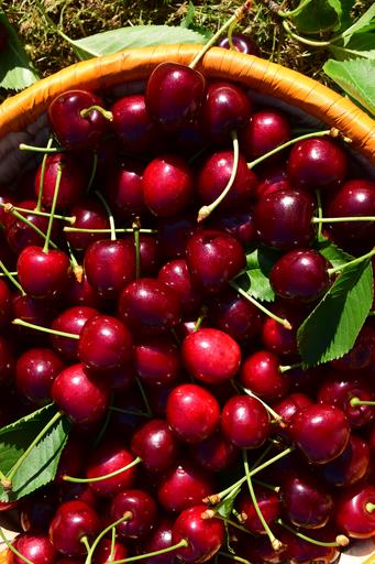 Keywords: cherries basket fruit red summer sweet cherry fruits garden healthy cherry harvest