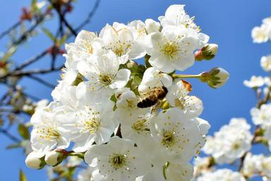 Keywords: cherries flowers work closeup white nature cherry sad spring bee insect
