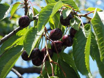 Keywords: cherries fruits fruit red ripe sweet cherry purple black over ripe fruity cherry harvest bing cherry leaves