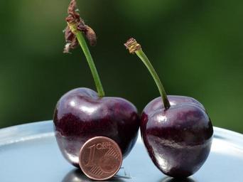 Keywords: cherries large huge size comparison cent penny coin monster cherry red sweet delicious purple