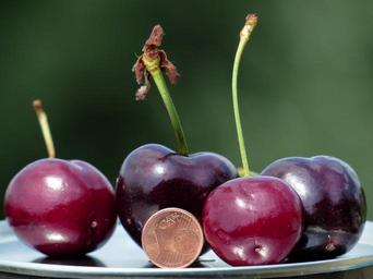 Keywords: cherries large huge size comparison cent penny coin monster cherry red sweet delicious sweet cherries summer fruit fruit