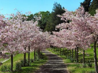 Keywords: cherry blossom alley of cherry trees pink flowers trees lawn nature spring field forest landscape cherry japanese cherry flowering cherries ornamental trees ornamental conifer pine fir branch country road garden fruit tree wallpaper