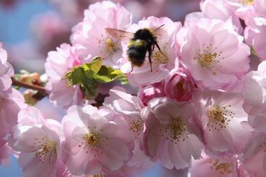Keywords: cherry blossom bee spring japanese cherry trees collect bee in the approach pink pollination