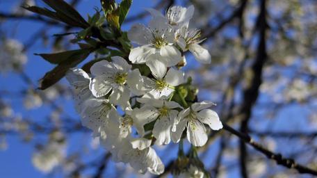 Keywords: cherry blossom spring white white blue flowers tree blossoms cherry road branches