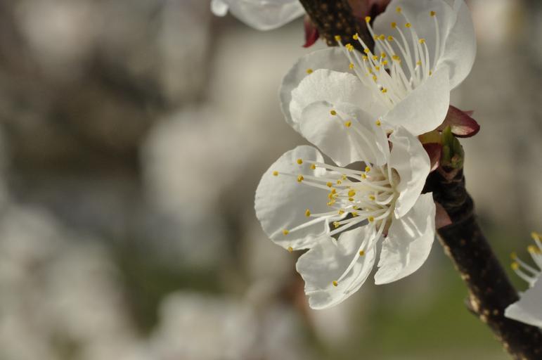 Keywords: cherry blossoms apricot blossoms white flowers flower bud spring white cotton flower pistil close macro macro photography garden young frisch plant tree road engine healthy